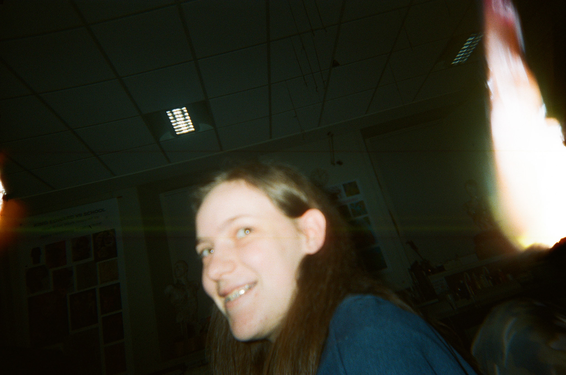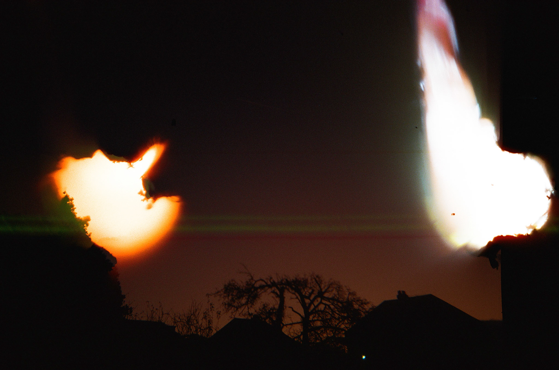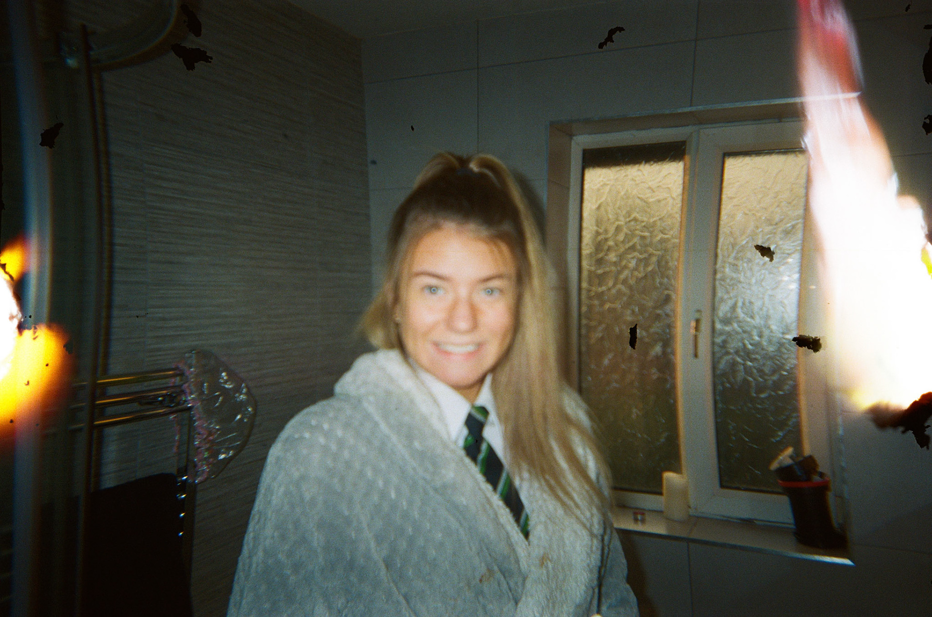 I drilled into the back of a Kodak FunSaver 800 to achieve light leaks on every frame of the film. I taped the hole so I could cover and uncover whenever I chose. The negatives had an even spread of light leaks and film errors. I would've liked the light leaks to have more colour, meaning I should have exposed the film less.
