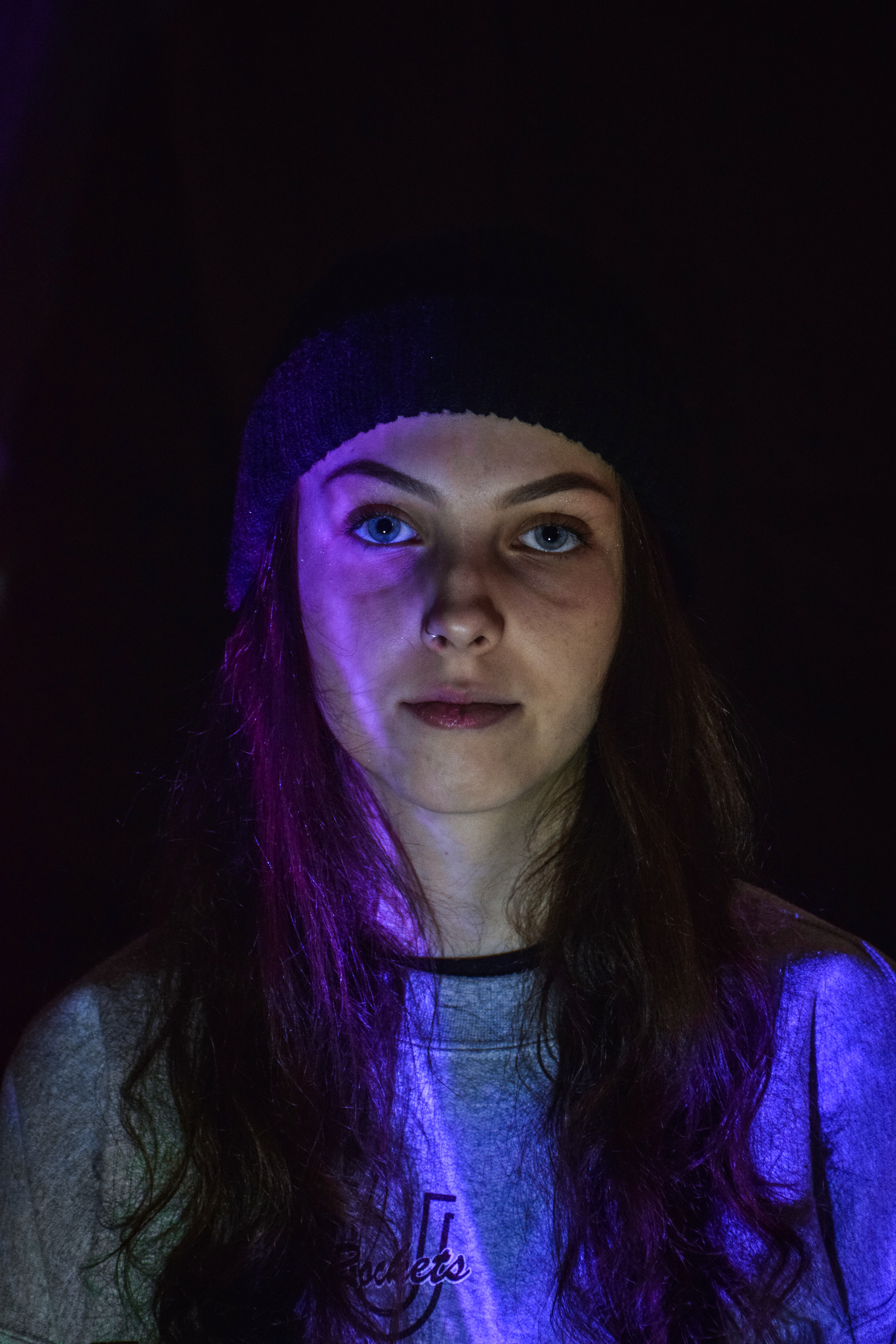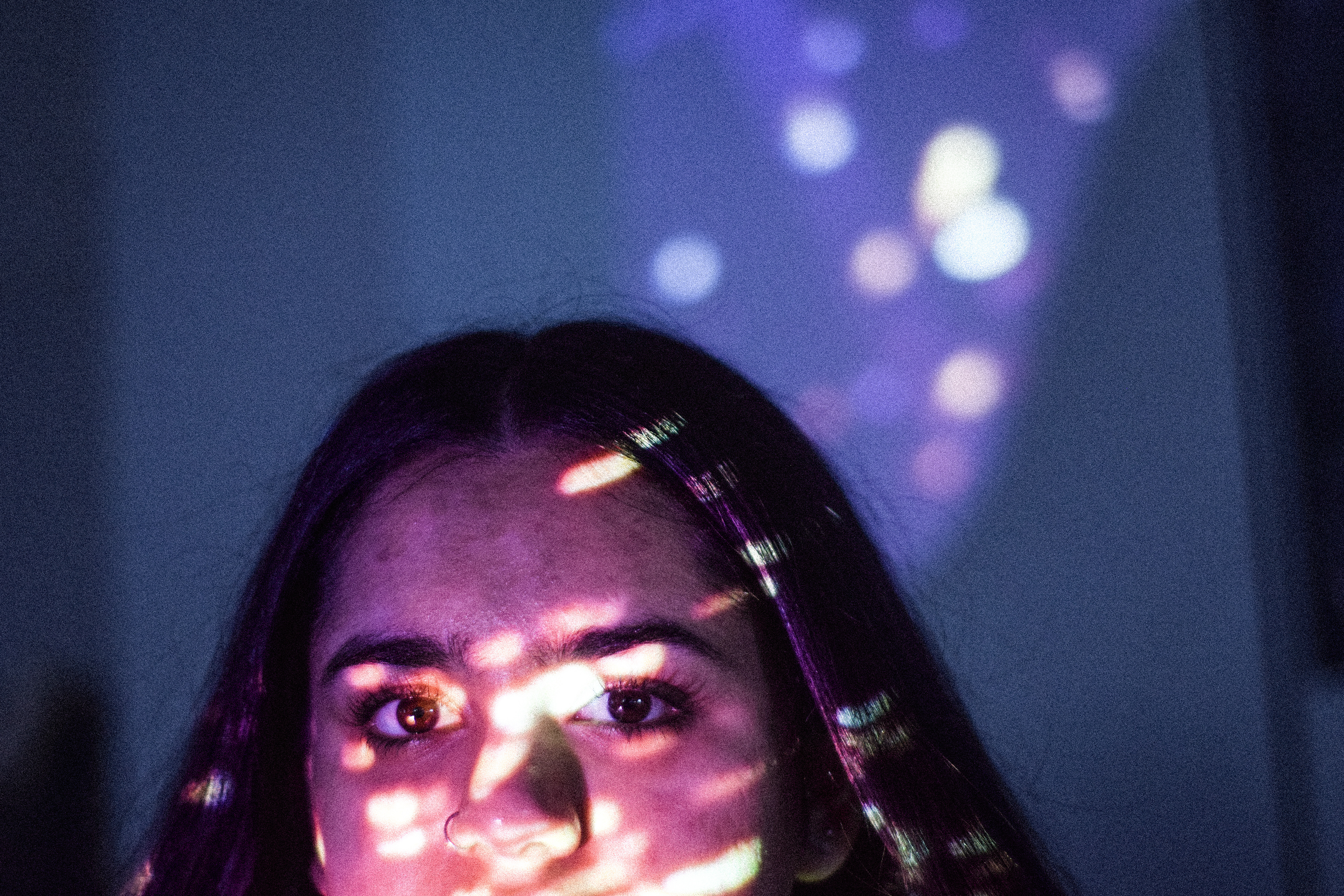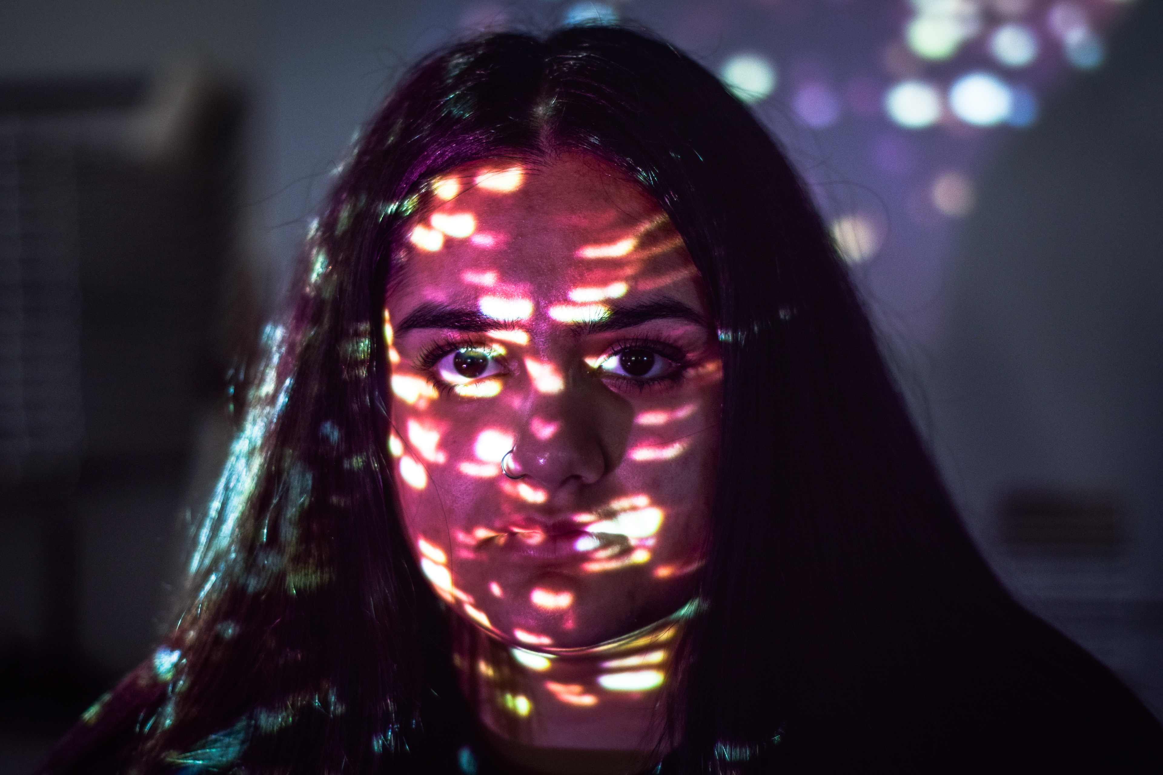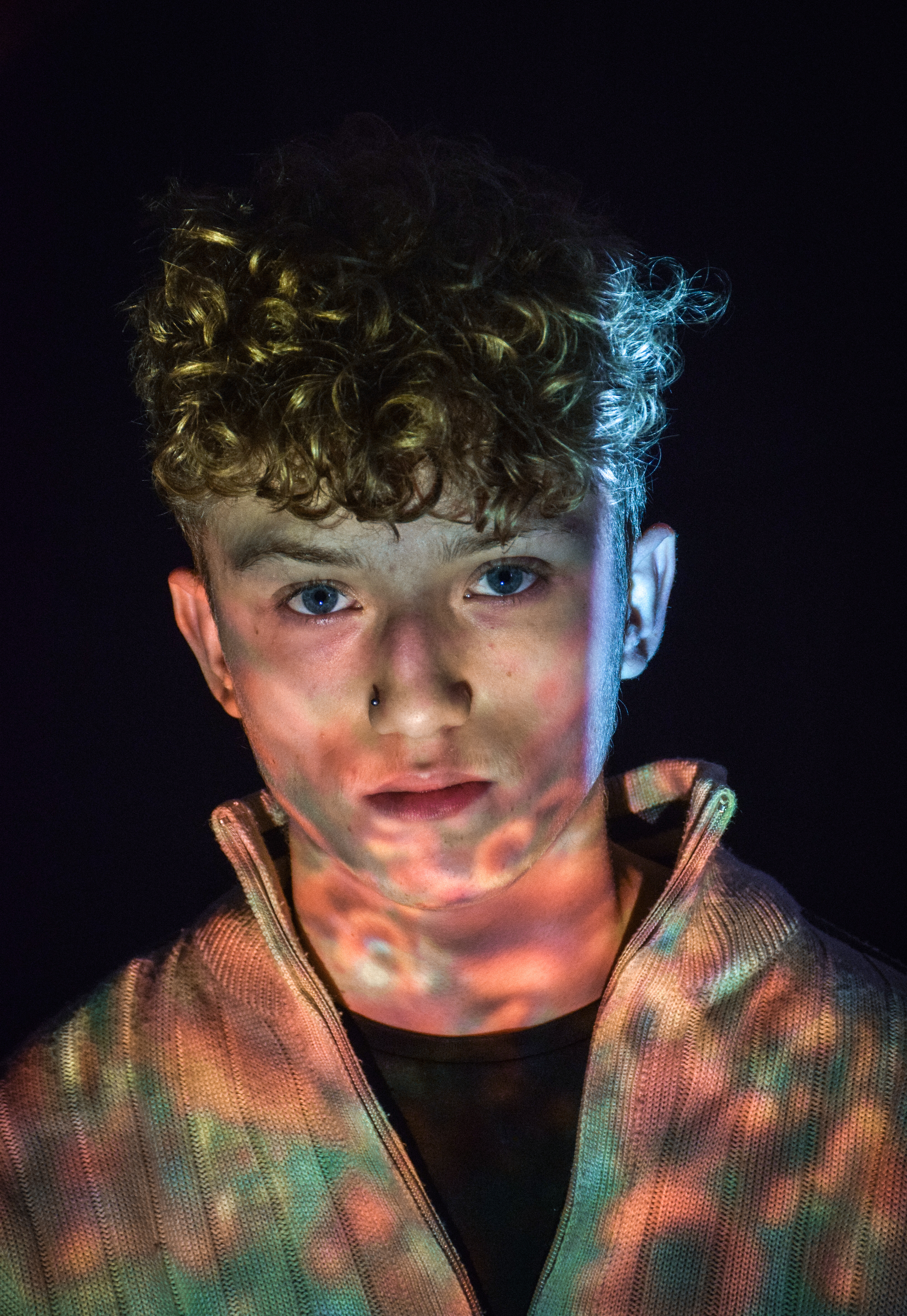 We projected several different images onto faces and used a Nikon D3300 DSLR to photograph the results. We changed white balance, shutter speed etc. to achieve different results. We edited the images in Lightroom CC.